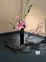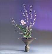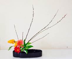 Although you can determine the lengths of the three main stems or branches, each one has its own bend and volume consisting of smaller branches, leaves, flowers, berries, etc. Therefore, where and at what angle you arrange the rest of your materials will be different for every ikebana arrangement. The school and style of an arrangement combined with your eye and creativity all come into play. Still, visual balance of length, angle, volume and empty space must be simultaneously satisfied for a successful ikebana piece.
