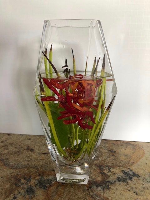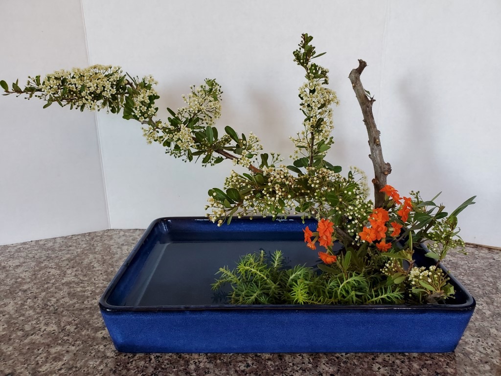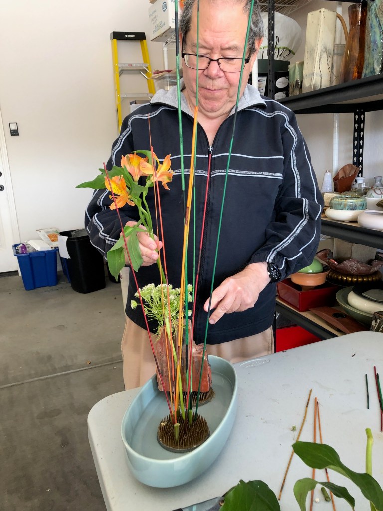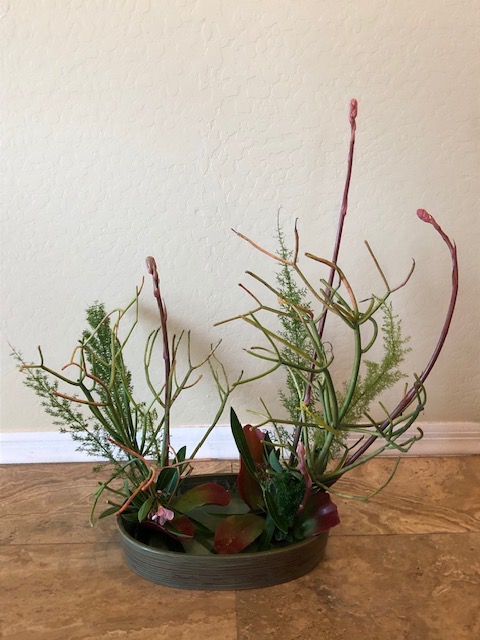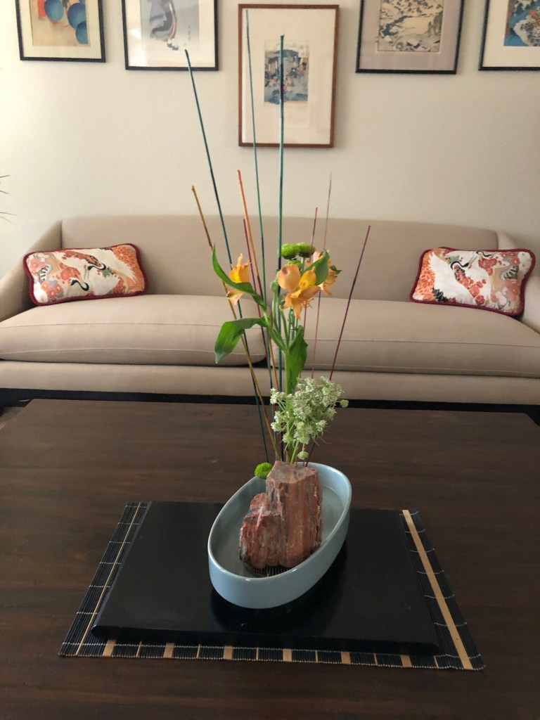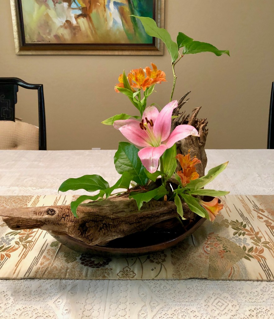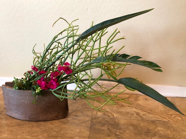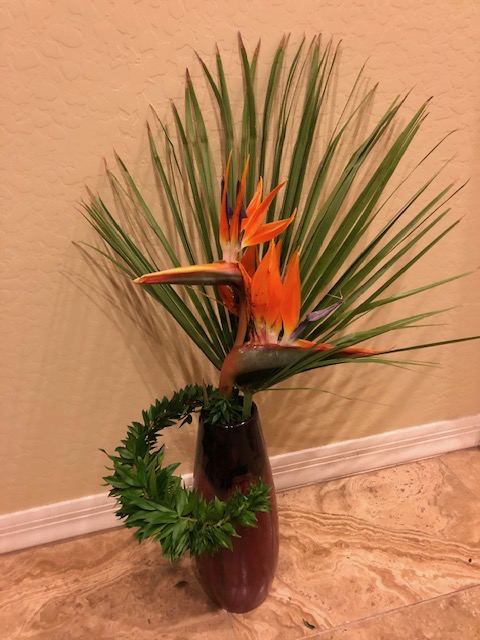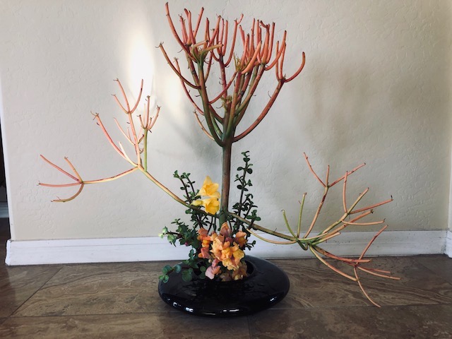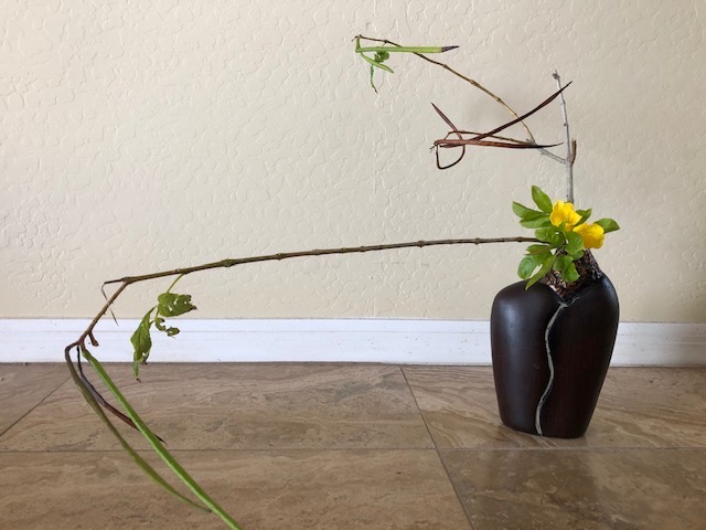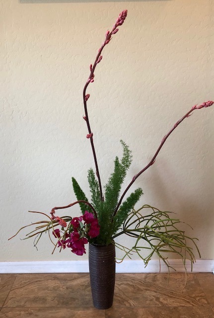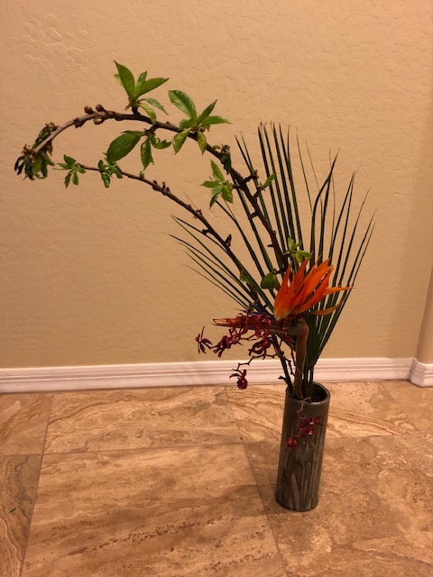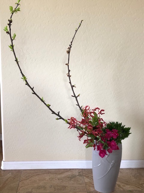 During the early spring of 2020, the unprecedented Covid-19 pandemic caused the U.S. to restrict any type of social gathering. Self-distancing was the order of the day. In response, Chapter 167 started a program titled Ikebana Home Workshop whereby members were encouraged to keep up their ikebana skills and create arrangements to fill their creative needs. Many home-bound members used materials from their gardens or picked up flowers when they had to grocery shop. The results are shown below—dozens of beautiful arrangements that radiate joy, beauty, and an appreciation for life!